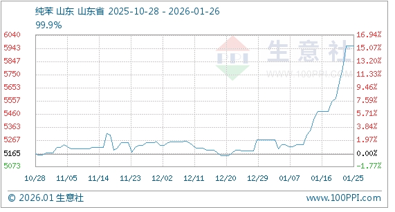 从价格走势来看,纯苯和苯乙烯价格表现更为强势。纯苯方面,据生意社数据显示,截至1月26日,国内主流厂商纯苯报价在5200-6000元/吨区间,其中齐鲁石化报价6000元/吨,较月初显著上涨。而作为纯苯最主要的下游产品,苯乙烯同样表现强势。本月以来苯乙烯期货2603合约价格从7124元/吨涨至7708元/吨,涨幅8.19%,持仓量攀升至42.34万手,创下阶段性高位。有市场分析人士指出,当前纯苯及苯乙烯价格已摆脱前期低位震荡区间,进入新一轮上行通道。