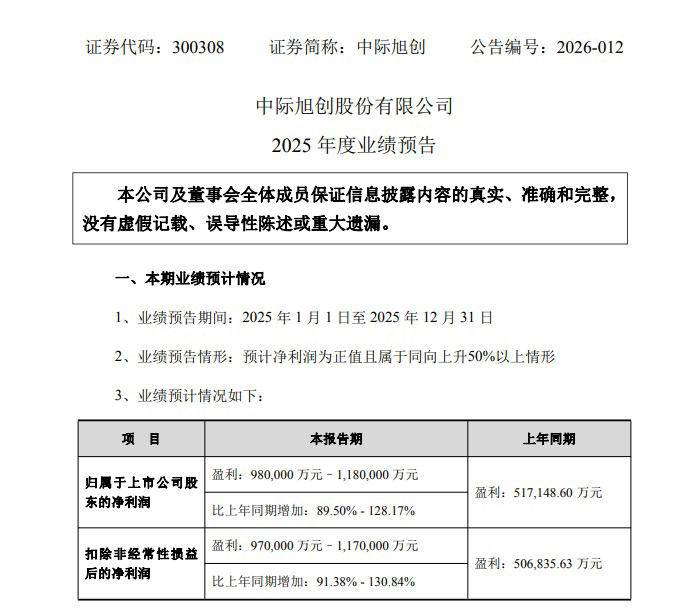 中际旭创业绩预告。