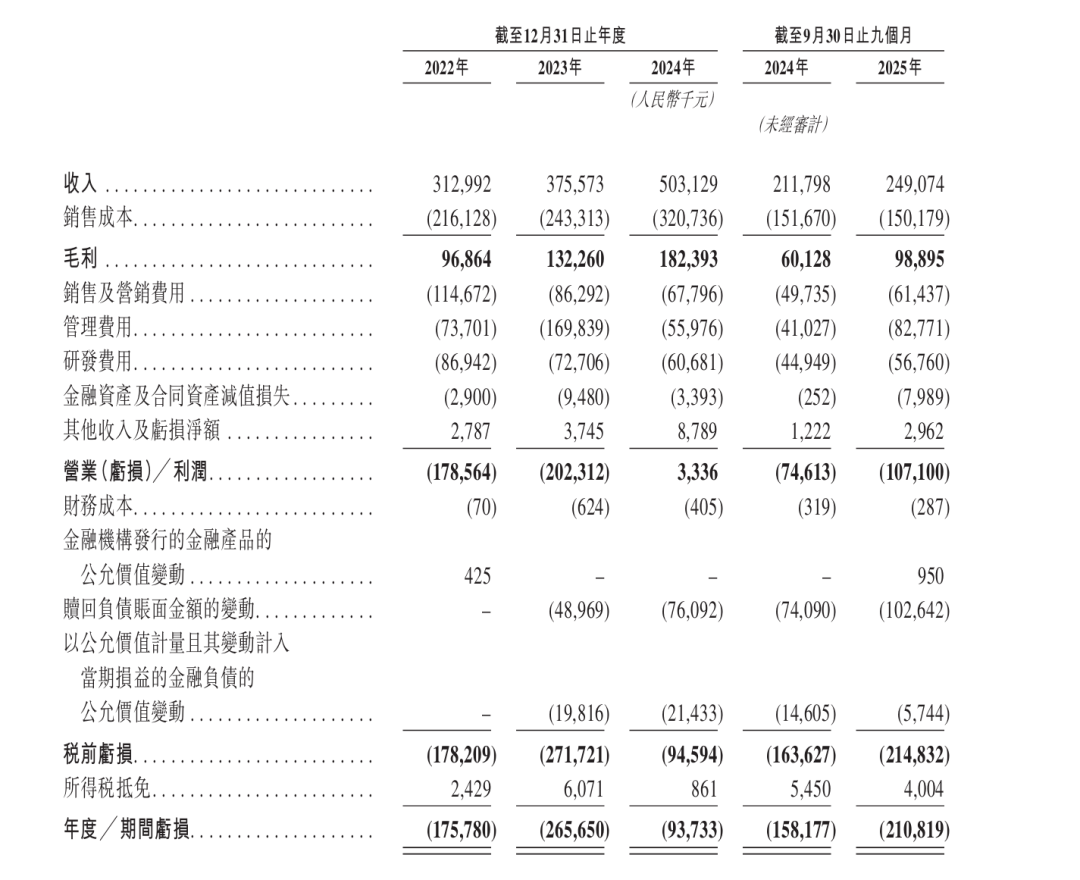 虽然2022年和2023年分别净亏损1.76亿元和2.66亿元,但2024年净亏损已收窄至9373万元。不过,由于持续的研发投入和市场拓展,2025年前9个月公司期内亏损再次扩大至2.1亿元。