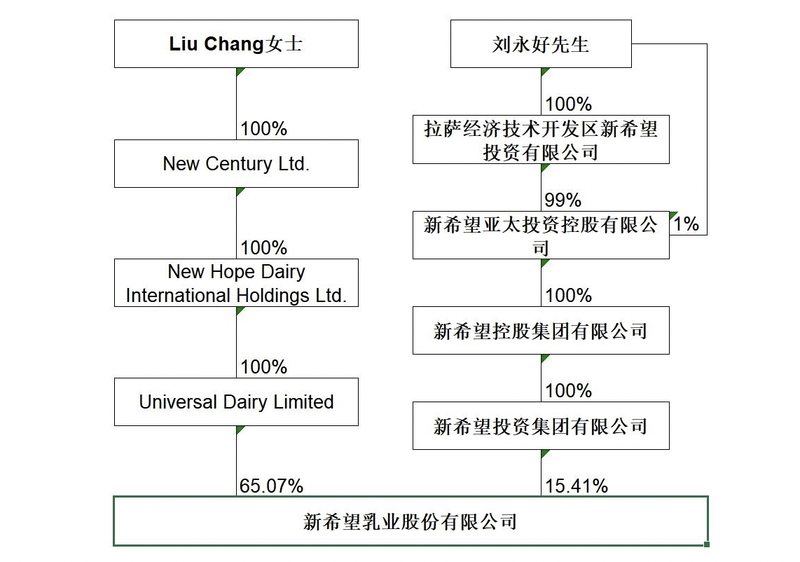 新乳业2024年年报显示,刘畅间接持有UNIVERSAL DAIRY LIMITED(简称:UDL )100%股份,UDL持有新乳业65.07%股份;刘永好间接持有新希望投资集团有限公司100%股份,新希望投资集团有限公司持有新乳业15.41%股份。