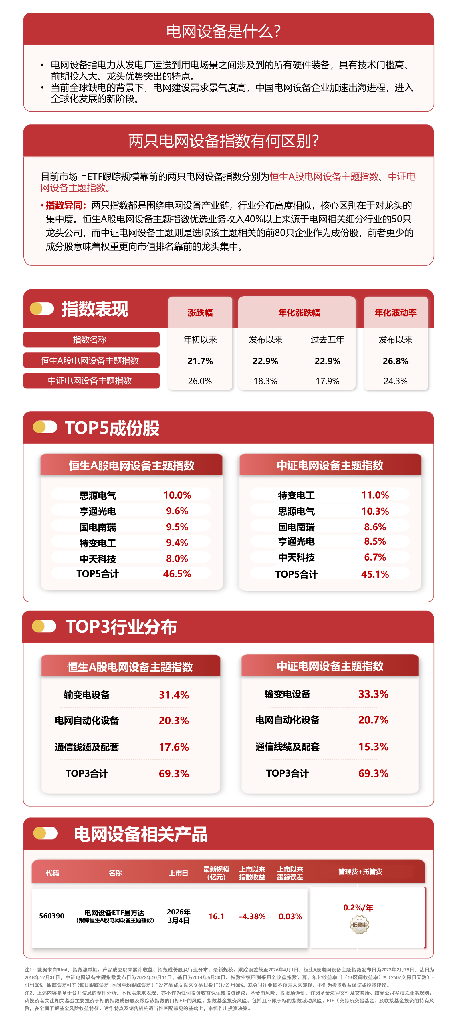 ETF方面,易方达基金旗下电网设备 ETF易方达(560390) 跟踪恒生 A 股电网设备主题指数,最新规模 16.1 亿元,管理费 + 托管费合计仅 0.2%/ 年。