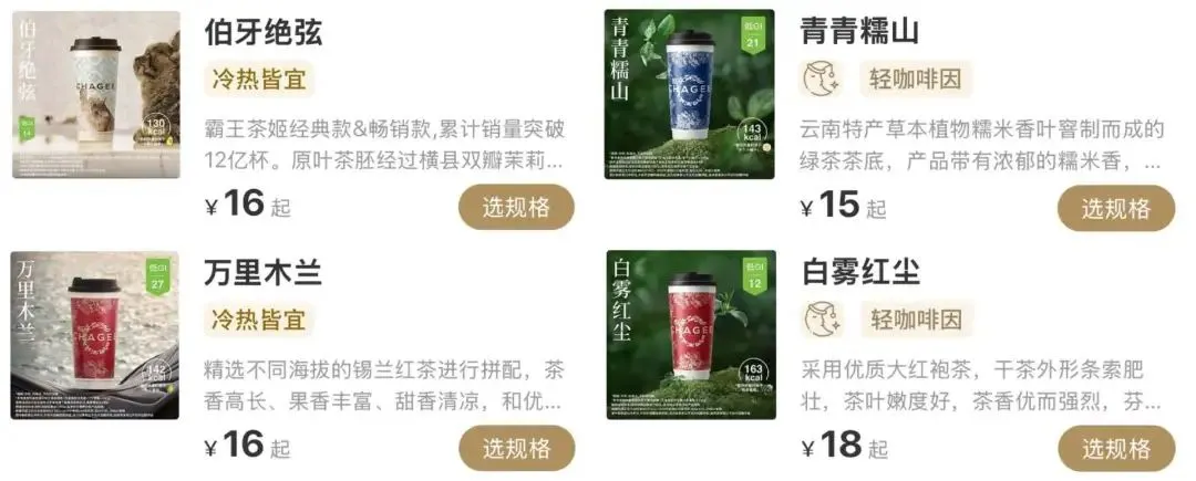 珍珠奶茶、茉莉奶绿等听起来平平无奇,对比之下,醒春山、木兰辞就显得新鲜有趣多了。