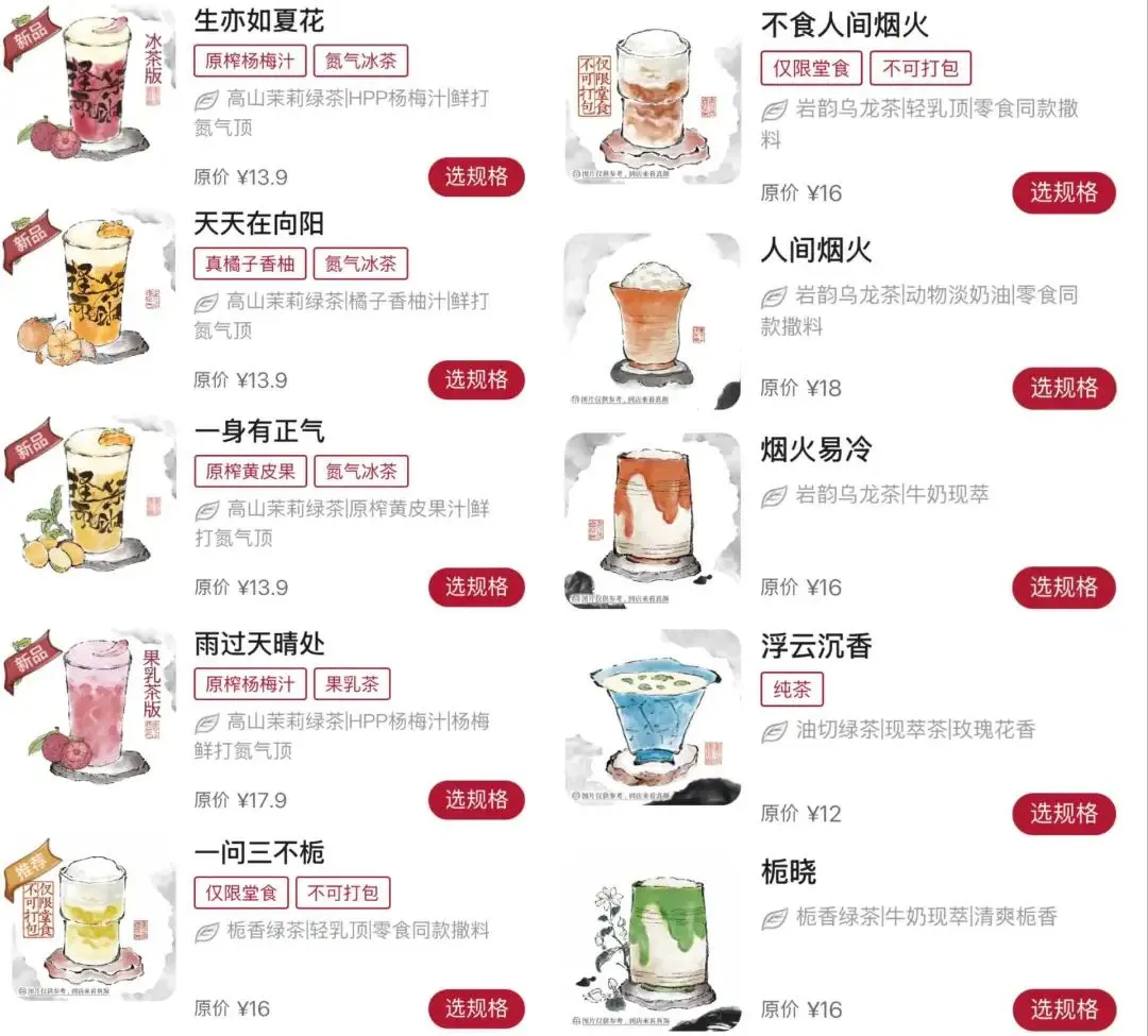当你以为“蓝田仙人”“黛玉”指的是人物角色,“少年游”是词牌名,“云朵盐水鸭”就是道菜的时候,这些名称已经悄悄登上了奶茶店的菜单栏。