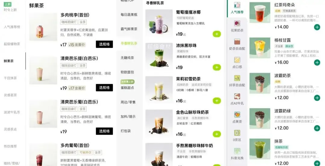 图源:喜茶GO小程序截图;奈雪点单小程序截图;1点点alittleTea+小程序截图