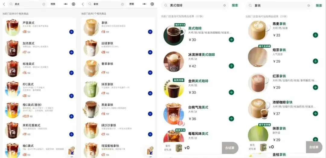图源:瑞辛咖啡小程序截图;星巴克小程序截图