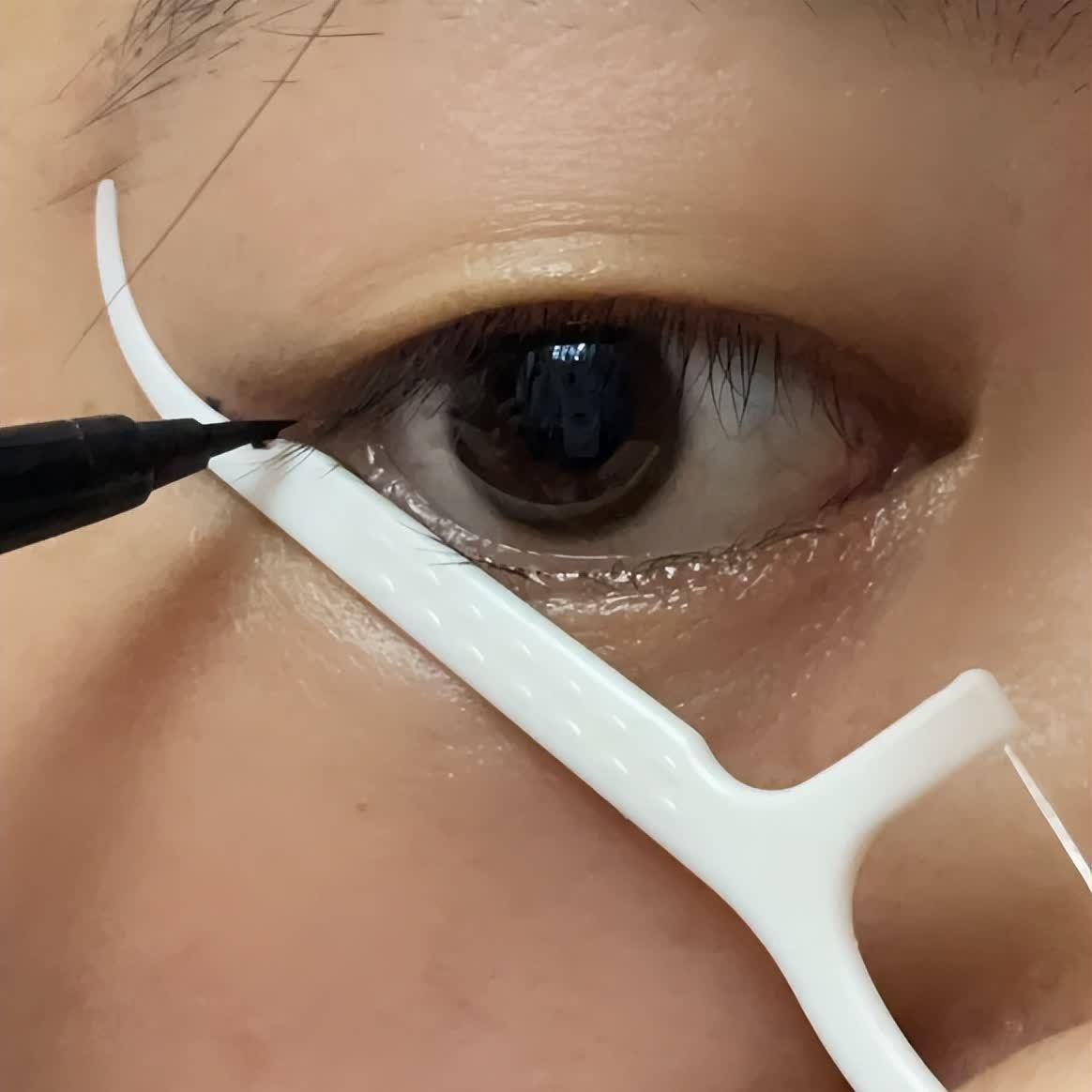 把眼线把手的位置,固定在眼尾,直接用眼线笔画一条线,这不就是眼线了吗?