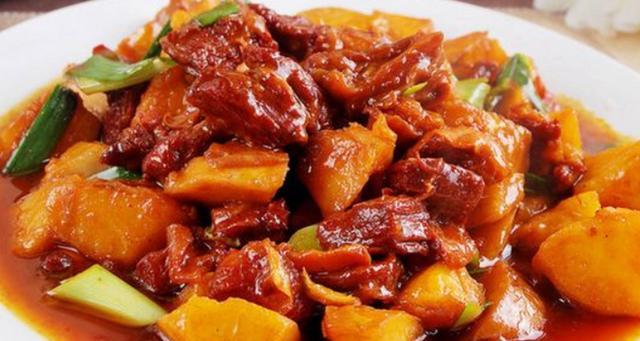牛肉切块冷水下锅,加姜片煮出血沫后捞出洗净。热油放姜片、葱段爆香,下牛肉翻炒至表面微黄,加生抽、老抽调味,再放土豆块翻炒均匀,加没过食材的热水,大火烧开后转小火炖40分钟,最后开大火收汁就好。