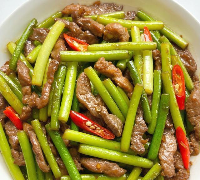 蒜苔洗净切段,瘦肉切丝用生抽、料酒腌10分钟。热油下肉丝炒至变色盛出,留底油放蒜末爆香,倒入蒜苔翻炒2分钟,加少许盐调味,再倒回肉丝一起翻炒1分钟,确保食材入味就可以装盘了。