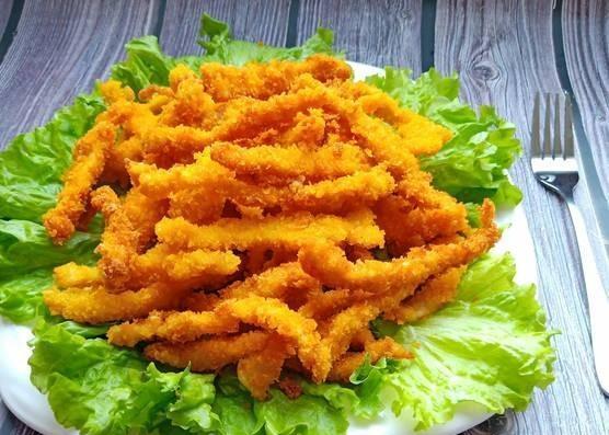 2、锅中热油油,油温7成热放入鸡胸肉,炸制变色金黄后捞出,待油温升高再复炸一遍,出锅撒上辣椒粉即可。