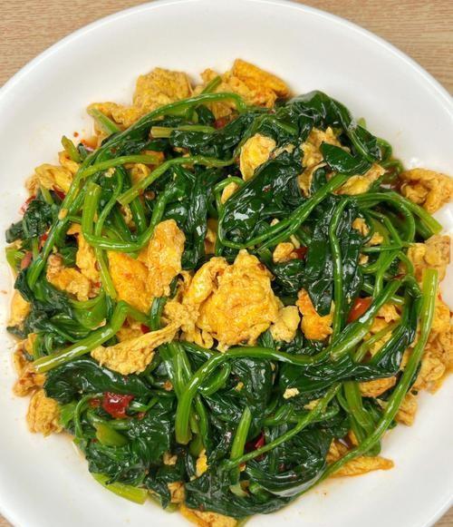 材料:菠菜 300 克、鸡蛋 2 - 3 个、大蒜、盐、食用油适量。
