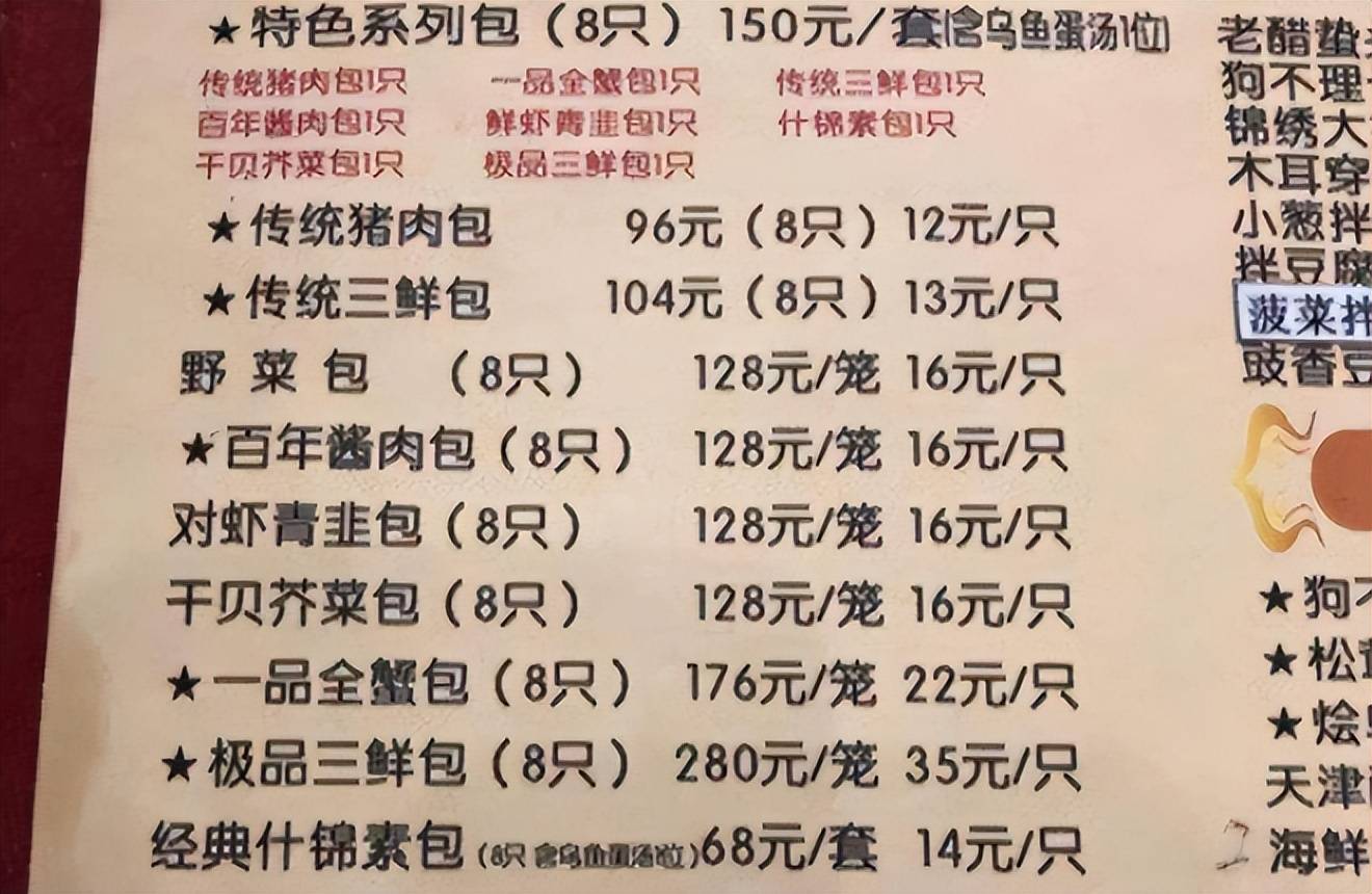 以前2块钱一个的基础猪肉包,慢慢涨到35块钱一个,一笼8个就得花近300块,价格翻了10多倍,远超猪肉、面粉这些原料的涨幅,连同行里高端包子店都不敢这么定价。