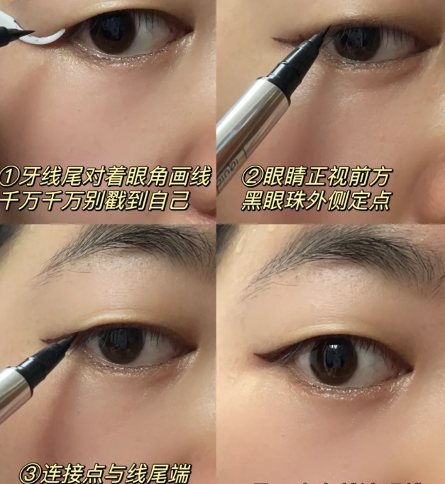 谁能想到,一个牙线就可以把眼线画好了,画起来非常简单。