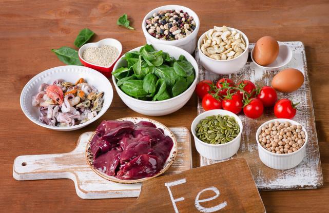 饮食中的铁分为血红素铁和非血红素铁。1、血红素铁存在于动物性食物中,并且易于吸收,吸收率可达25%。红肉、禽类和鱼是最好的膳食铁来源。