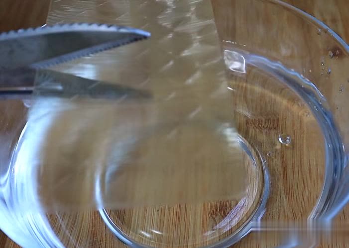 第二步:把泡软的吉利丁片分量放入之前的三个碗中,稍微搅拌一下备用。