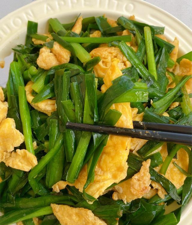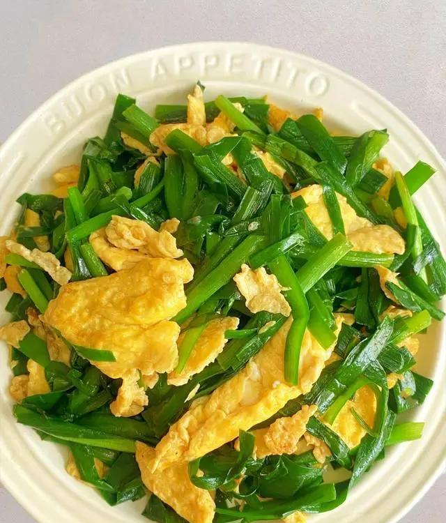 出锅:韭菜断生后即可出锅装盘,保持韭菜的鲜嫩和鸡蛋的松软。