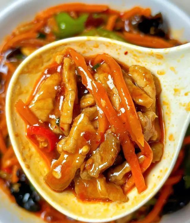 合炒与调味:将炒好的肉丝倒回锅中,倒入事先调好的鱼香汁,快速翻炒均匀,使所有食材充分裹上鱼香汁,待汤汁浓稠即可出锅。