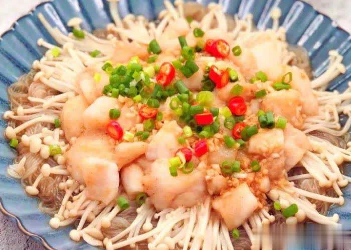 【准备原料】:龙利鱼200克,金针菇120克,干粉丝45克,尖椒三根,葱花少许,蒜末20克,蒸鱼豉油三勺。