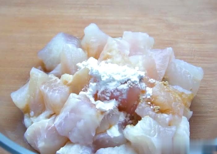 第一步:首先我们把龙利鱼清洗干净,然后用吸水纸吸干表皮的水分后,切成小段,检查鱼刺是不是剃干净后,倒入一个碗中,加入一勺蚝油,半勺生抽,半勺料酒,少许的胡椒粉,一勺淀粉,1毫升的食用油,均匀抓捏30秒,腌制十分钟备用。