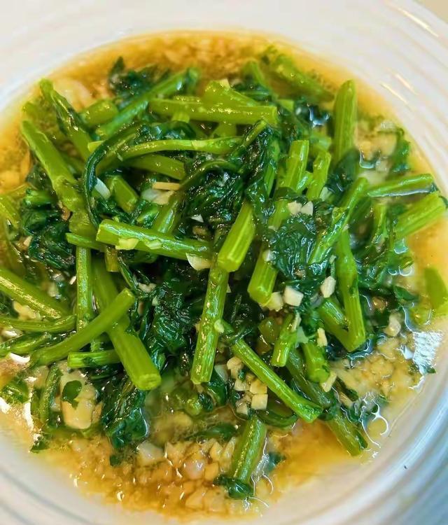 3、蒜蓉茼蒿:清爽解腻,脆嫩不发黑