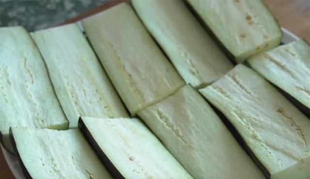 1.除了炒茄子,你最喜欢茄子哪种吃法呢?今天分享个不用炒不放油的茄子做法,比蒜泥茄子还要香,开胃又下饭,不解决三碗米饭根本停不下来。树上摘的茄子洗干净后,去头去尾,再分成两段,然后把每段对半切开。