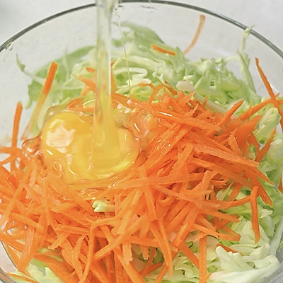 步骤9、平底锅刷油,放入蔬菜馅,中间挖一个小洞