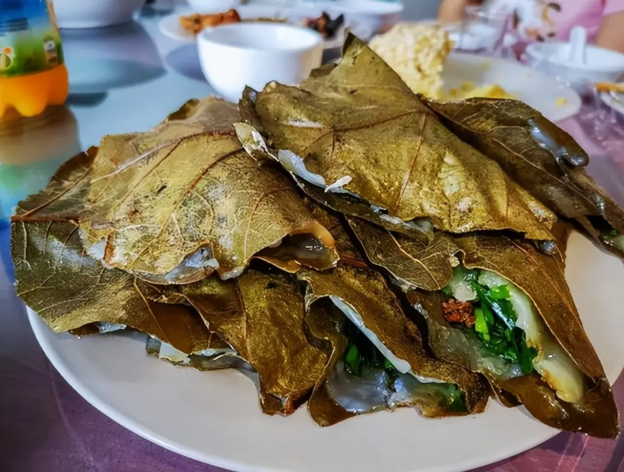 饽椤饼是河北秦皇岛的传统名吃,具体做法是用面粉和淀粉混合在一起,搅拌成糊状,然后把面糊放在饽椤叶上,中间加上馅料,对折以后,上锅蒸熟就可以了,吃起来不仅味道鲜美,用饽椤叶包裹,所以会有一股淡淡的饽椤叶清香。