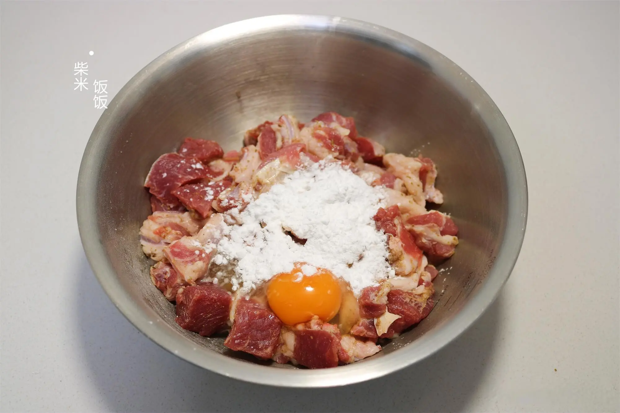 4,再打入一个鸡蛋,放点淀粉,再次抓匀。