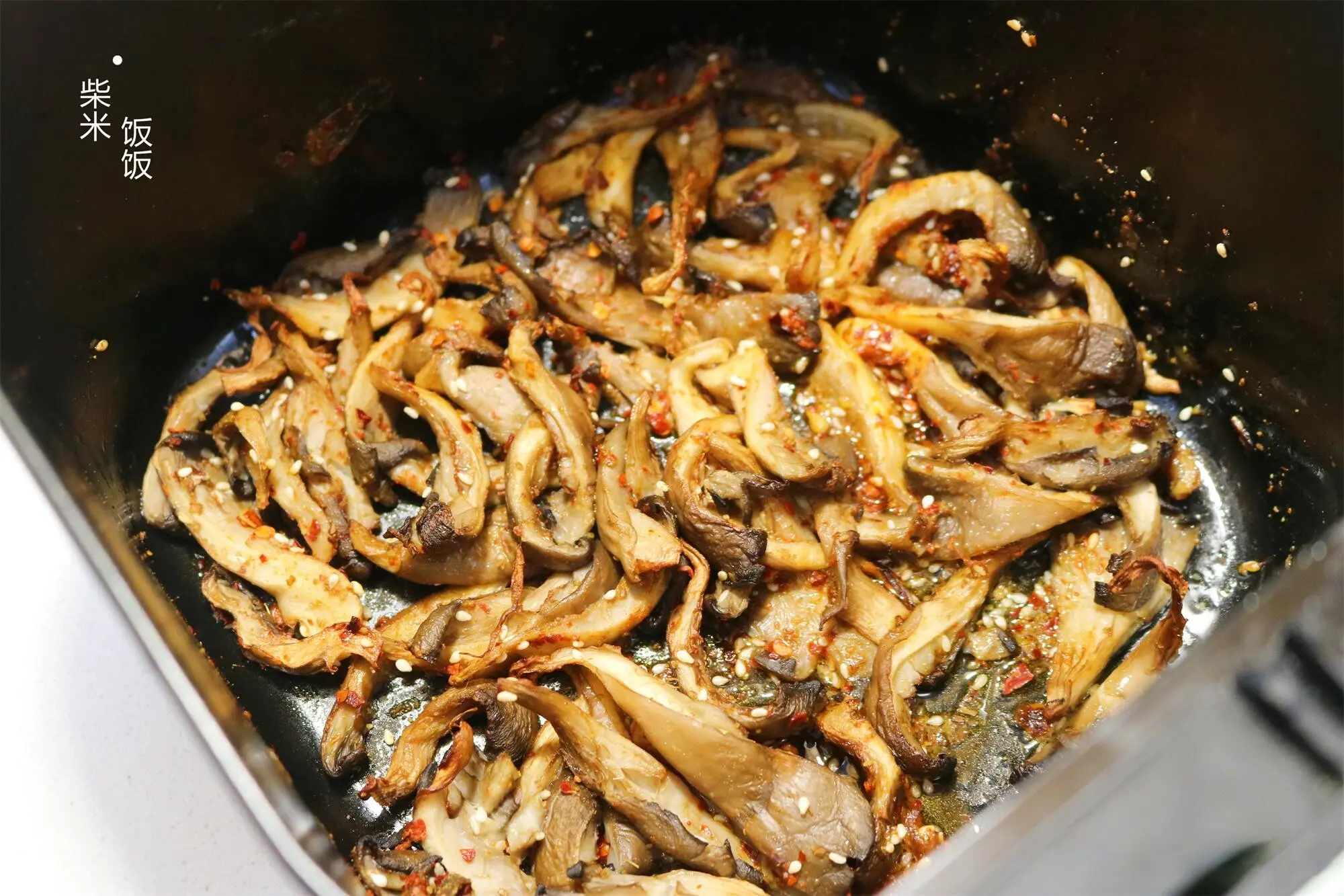 中间翻动一次,顺便加盐、辣椒粉、孜然粉调味。土豆外焦里糯,平菇鲜香筋道,超级好吃。大家可以放心做,好吃不翻车。