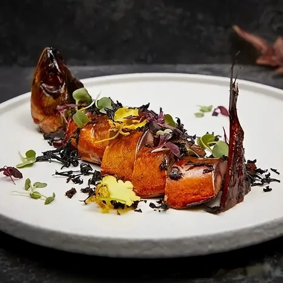 6、将椰子壳洗净晾干,将煮好的银鳕鱼和杏鲍菇小心捞出,摆放在椰子壳内,淋入剩余的酱汁。最后撒上鲜花椒3克增香提味,点缀葱绿段(可选)即可上桌。