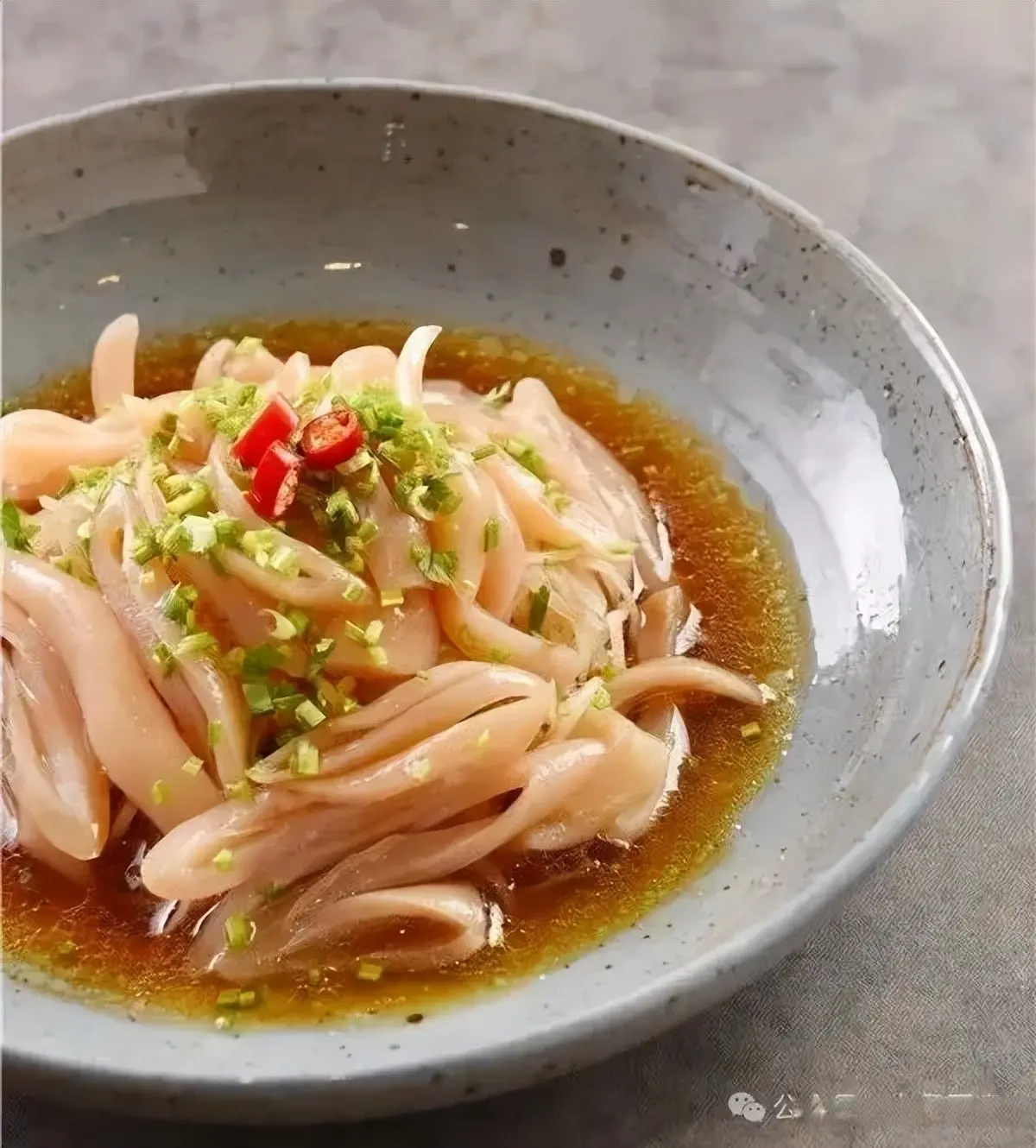 3. 汁酱根据比例调好,将海笋浸泡入味,装盘即可。