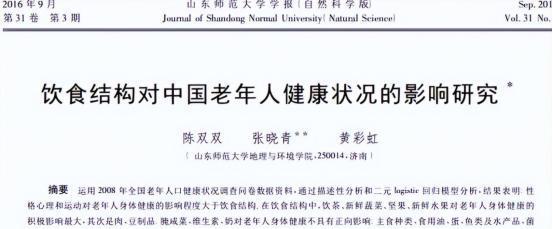陈双双.饮食结构对中国老年人健康状况的影响研究, 山东师范大学学报(自然科学版), 2016-09-15