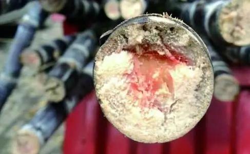 红心甘蔗不是含糖高,而是发生霉变的表现。每年的2~4月,天气逐渐回暖,甘蔗容易被节菱孢霉菌污染,产生3-硝基丙酸,出现“红心”。