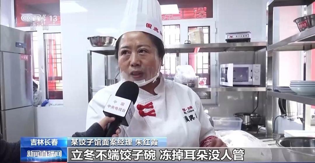 某饺子馆面案经理 朱红霞:东北人一般会怎么说,立冬不端饺子碗,冻掉耳朵没人管,所以立冬的时候,大家都喜欢吃一顿热腾腾的饺子。酸菜起到一个解腻的功效,吃着酸菜,回忆着小时候的味道,特别开心。