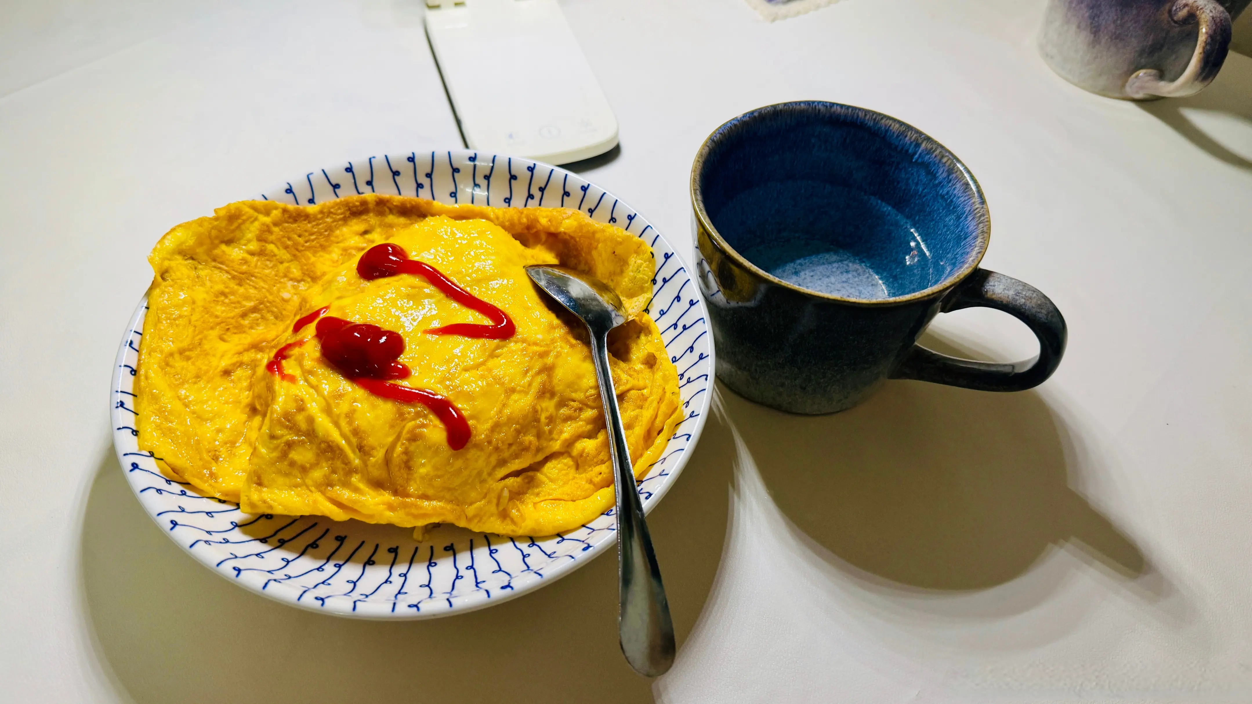 蛋包饭。孩子说想吃蛋包饭了。其实我是觉得蛋炒饭更好吃吧,不过她就是喜欢这种蛋包饭,里面就是简单的炒饭,加点火腿肠粒,或者什么都不加,加点生抽猪油炒一炒,摊个鸡蛋盖上面,挤点番茄酱就可以了。