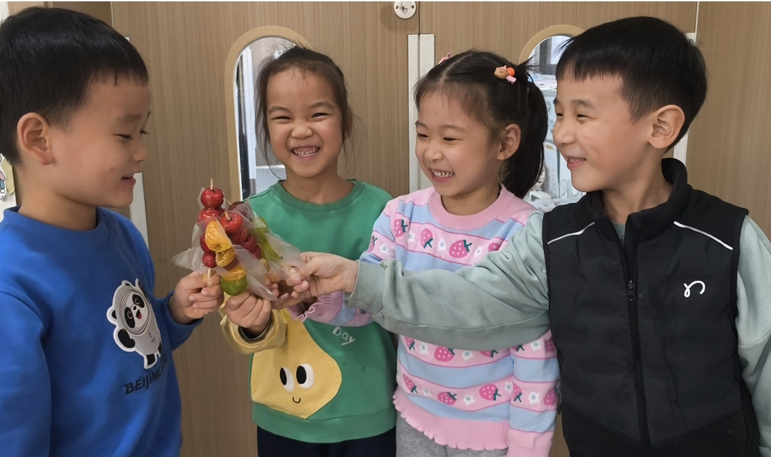 完成制作后,孩子们迫不及待地品尝着自己的劳动成果,酸甜的口感让大家赞不绝口。更令人暖心的是,孩子们还主动将亲手制作的糖葫芦分享给园长妈妈、其他班级的老师和小伙伴们,在分享中传递甜蜜与快乐。