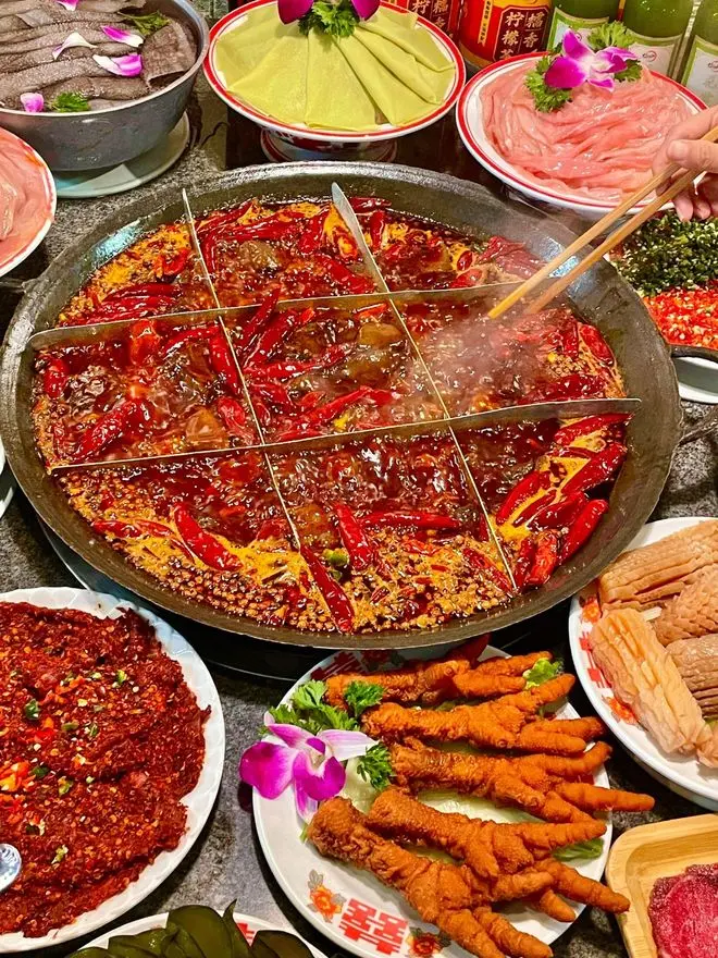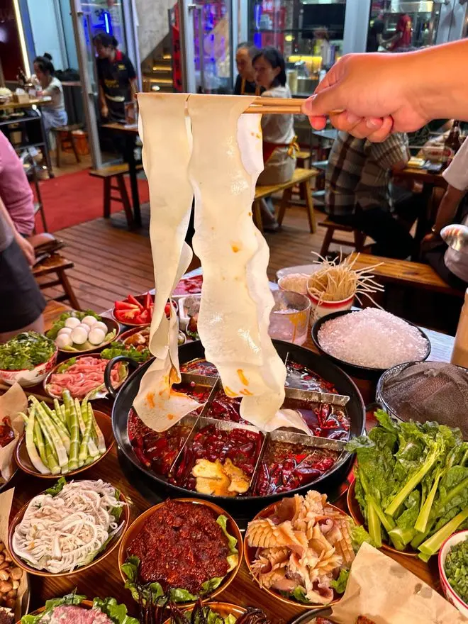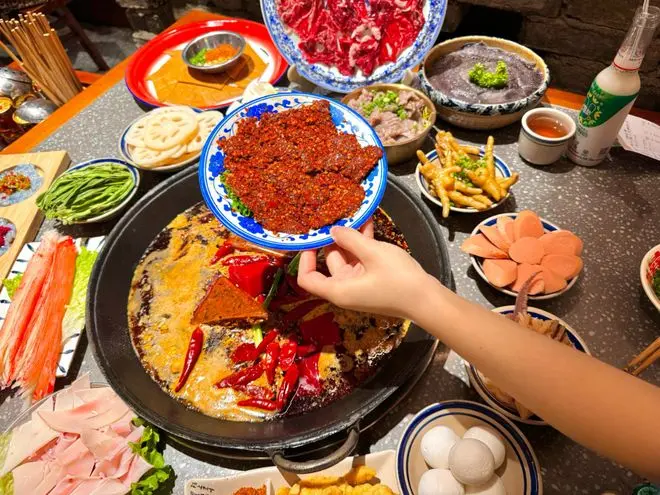成都火锅店则是精致生活的秀场。宽窄巷子的庭院火锅里,青花瓷餐具盛着巴掌大的雪花肥牛,服务员会贴心提醒"毛肚要七上八下"。春熙路的网红店甚至开发出火锅甜品套餐,抹茶冰粉与麻辣锅底形成味觉对冲。这种将烟火气美学化的能力,正是成都"快发展慢生活"的绝妙注脚。