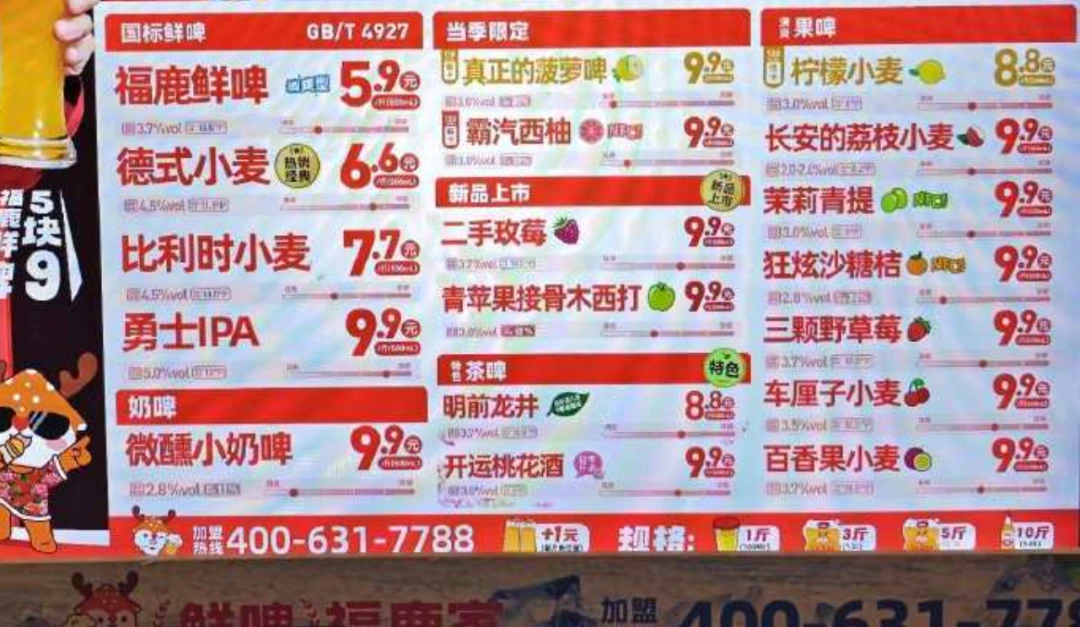 仔细一想,如果没有蜜雪冰城的助力,福鹿家似乎也不能在2、3年之内成为从小透明成长到全国首屈一指的鲜啤连锁品牌。
