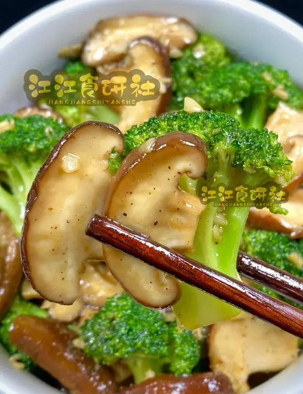 这道菜色泽亮丽,西兰花爽脆,香菇嫩滑,素菜也能吃出肉菜的满足感。