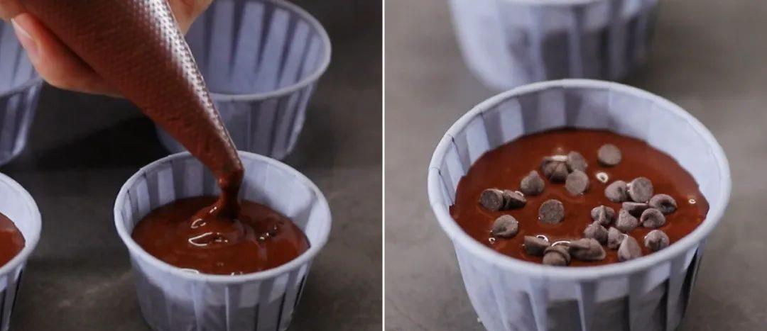 在面糊表面再撒上一些耐烘焙巧克力豆作为装饰。