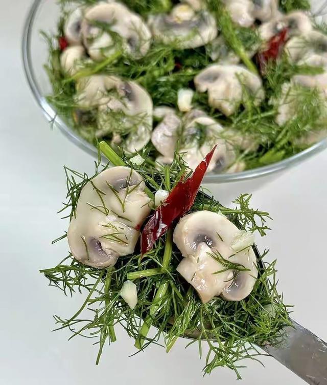4、茴香拌口蘑:鲜爽开胃,早餐配粥超合适