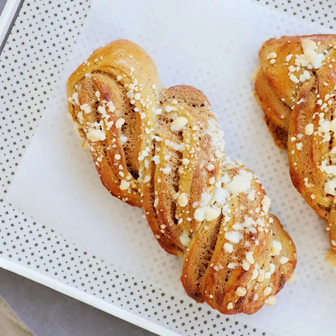 出炉的面包,冷却以后就可以吃了。试试吧,酥粒有着像曲奇一样的酥脆感,红茶+奶酥带来的类似奶茶的浓郁香气,还有淡淡咖啡味加成,这么丰富的口感太让人欲罢不能了!
