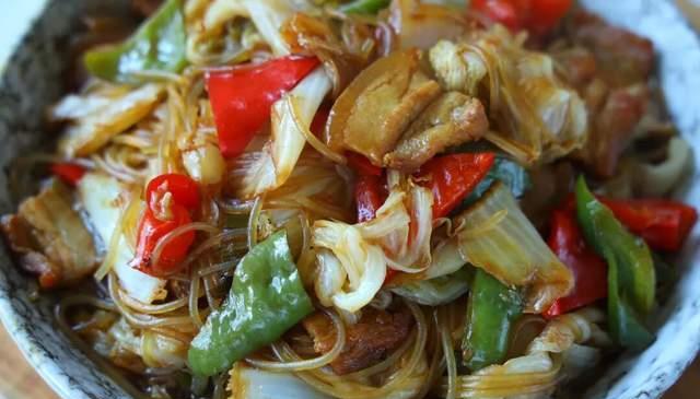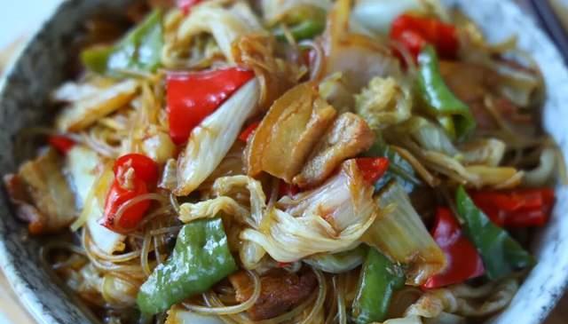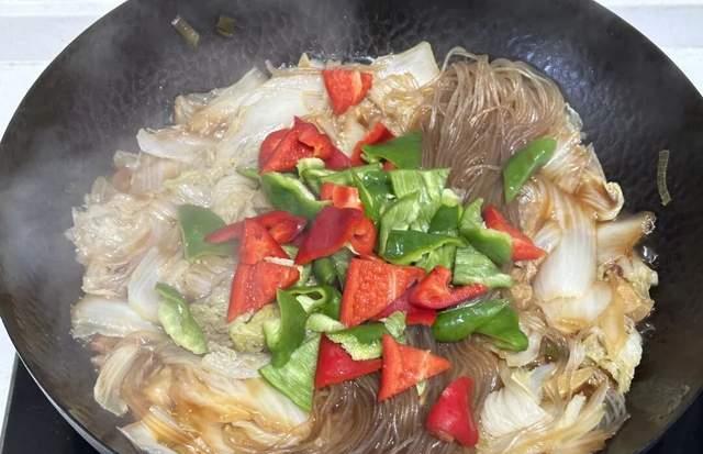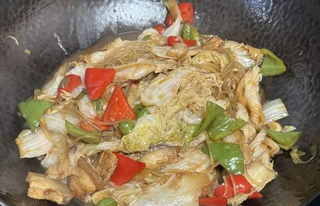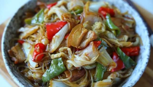 这菜的食材搭配,真是朴实又聪明。五花肉肥瘦相间,在锅里慢慢煸出自身的油脂,变得焦香金黄,一点也不会腻口,反而给整道菜提供了丰腴的底味。吸饱了肉汁的粉条,爽滑又筋道,筷子一挑起来还颤巍巍的,入口那份满足感,是很多高档食材都比不了的。主角白菜,正是冬天里最水灵、最便宜的时令菜,清甜软烂,恰到好处地平衡了肉的油腻。最后撒上一把青红椒,不仅添了一抹亮色,更带来一丝清新的辣意,让味道层次一下子活泼起来。