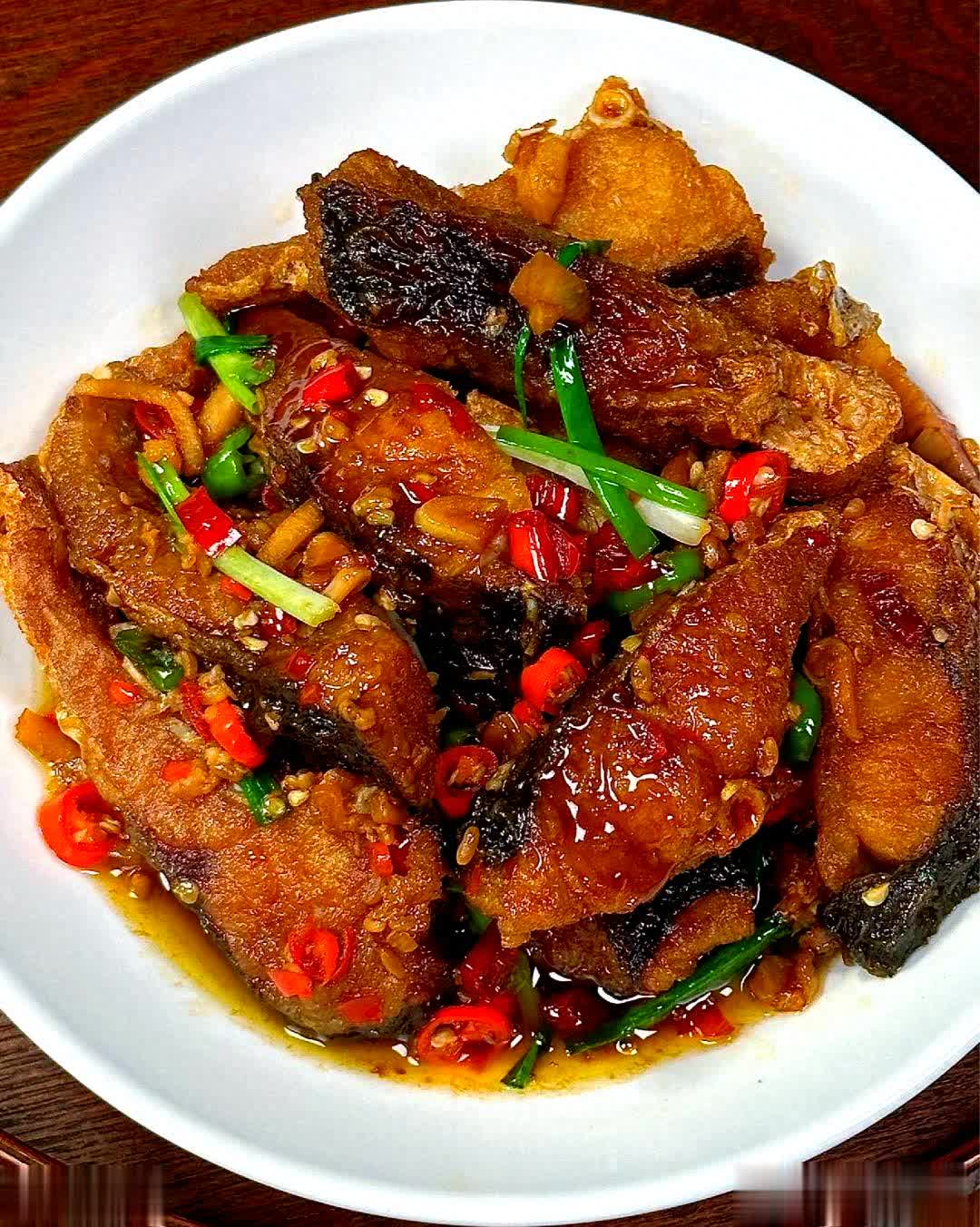 3. 红烧精髓:爆香姜片葱段,倒入酱汁烧开,放入鱼块小火焖10分钟。