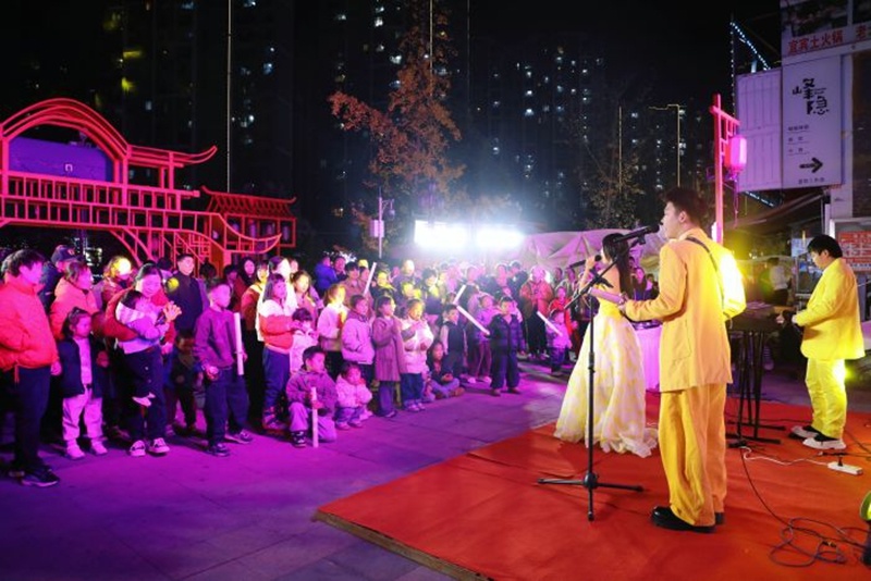 当晚,丰富的文化演出与互动游戏成为另一大亮点。歌手用温柔的嗓音唱响贵阳街巷故事,摇滚乐队以热血旋律点燃现场氛围,DJ秀则带来动感电音盛宴,传统与潮流在此碰撞融合。“黔味美食接龙”“烙锅食材猜猜乐”等互动游戏,让市民在品尝美食的同时参与其中,赢取商户联名优惠券、定制文创礼品及折扣卡等福利。“刚才玩游戏赢了优惠券,马上就来买了最喜欢的贵州辣椒面,这种边吃边玩的形式很有意思。”刚参与完游戏的大学生李同学举着优惠券兴奋地说。