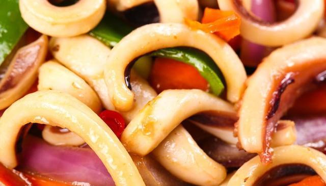2) 炒鱿鱼的火候:炒鱿鱼时,火候一定要掌握好。鱿鱼炒得过久容易变老,应该快速翻炒,变色后即可捞出。