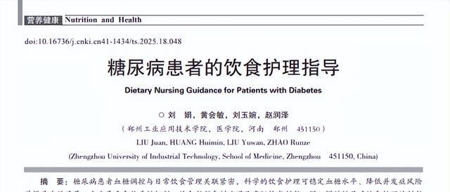 糖尿病患者的饮食护理指导,刘娟,现代食品,2025-09-28