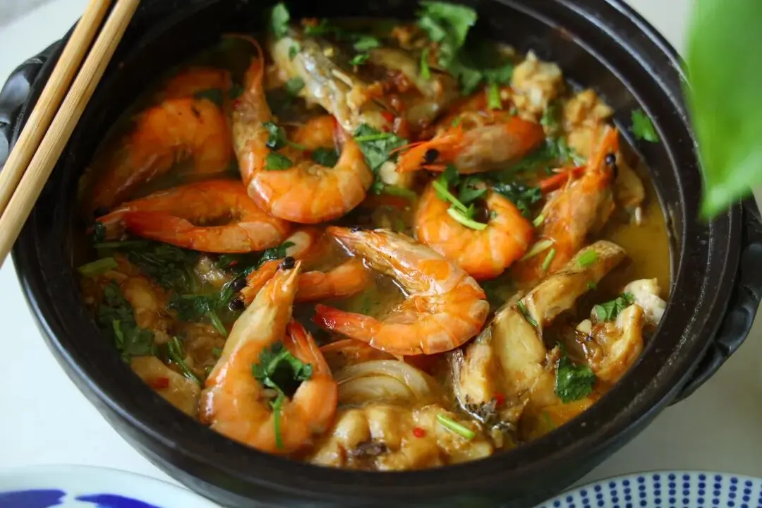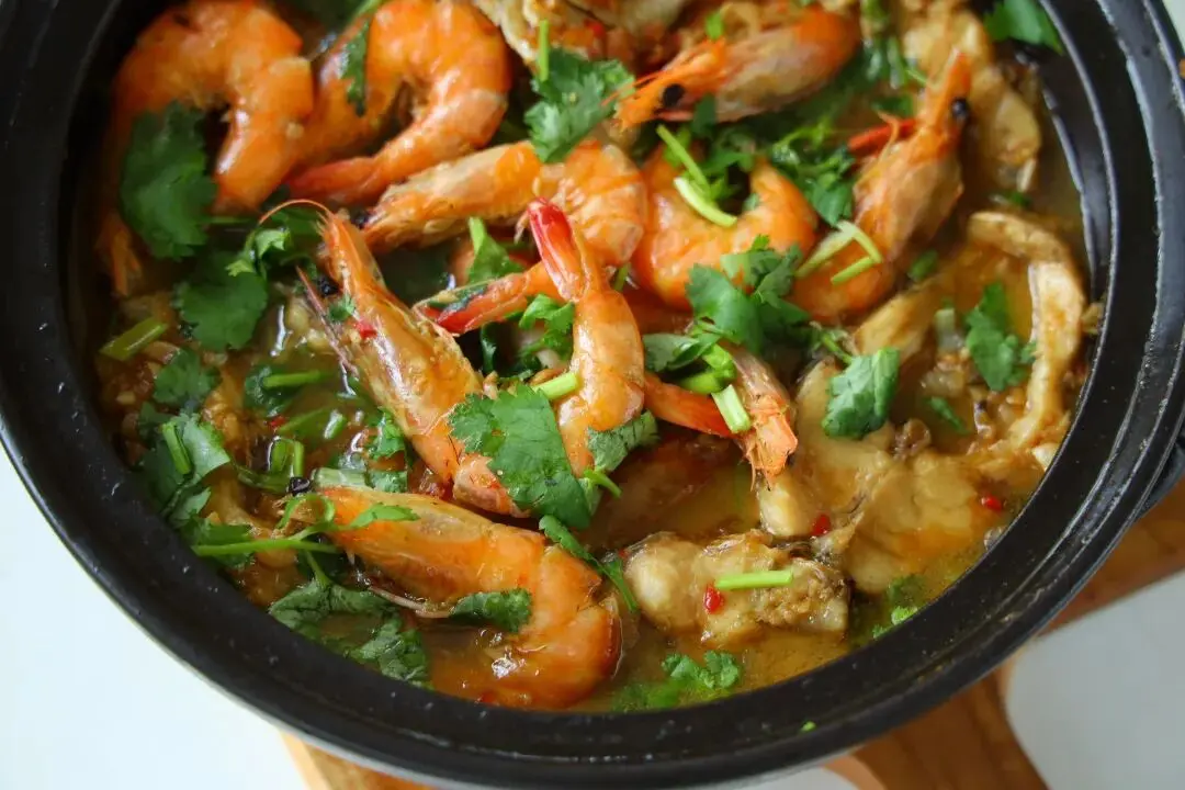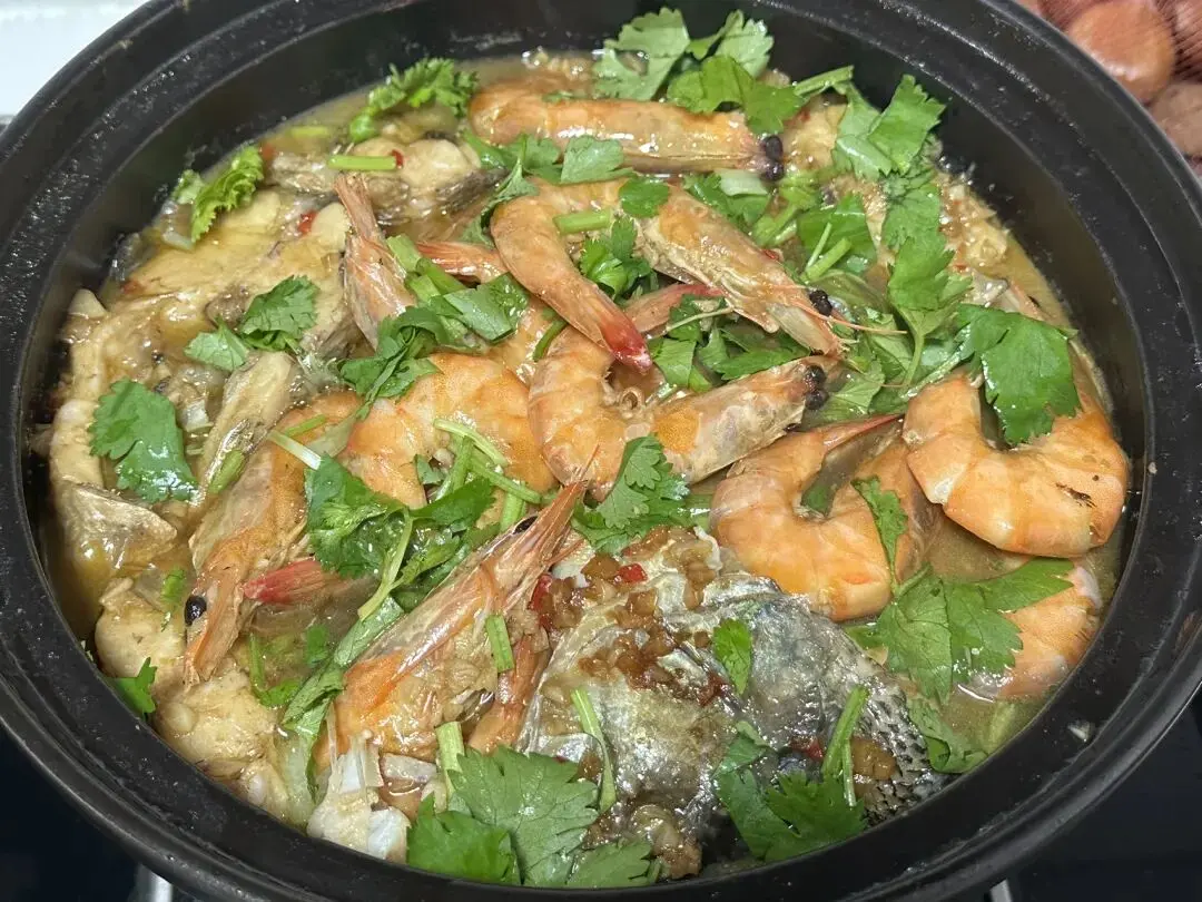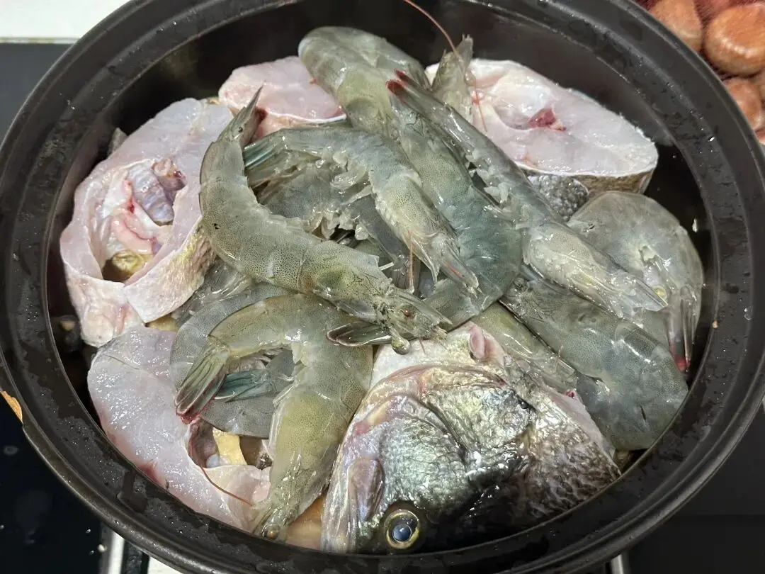 这几天温度一降,突然就馋那种热乎乎的东西。尤其在砂锅里焖的那一锅,现在口水都要流下来——鲈鱼和基围虾的搭配,真是鲜到骨子里!