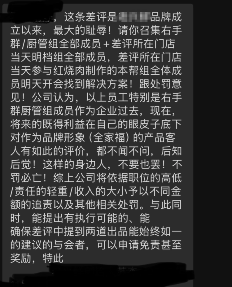 公司内部微信群还将该差评选为“品牌成立以来最大的耻辱”。
