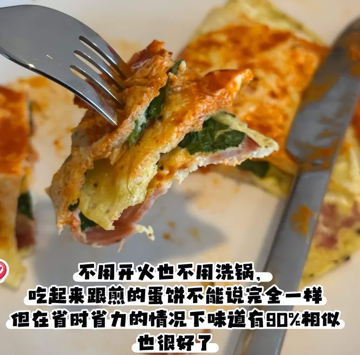 早上来不及做早饭,我妈就会给我做这个火腿菠菜蛋饼,巨简单,有手就会。