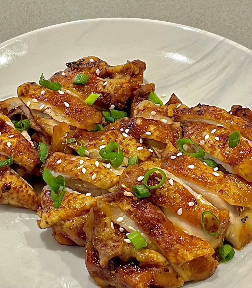 最后加热好了之后,拿出来撒上葱花和芝麻,好吃的照烧鸡腿就做好了,肉质鲜嫩,吃起来一点都不柴。